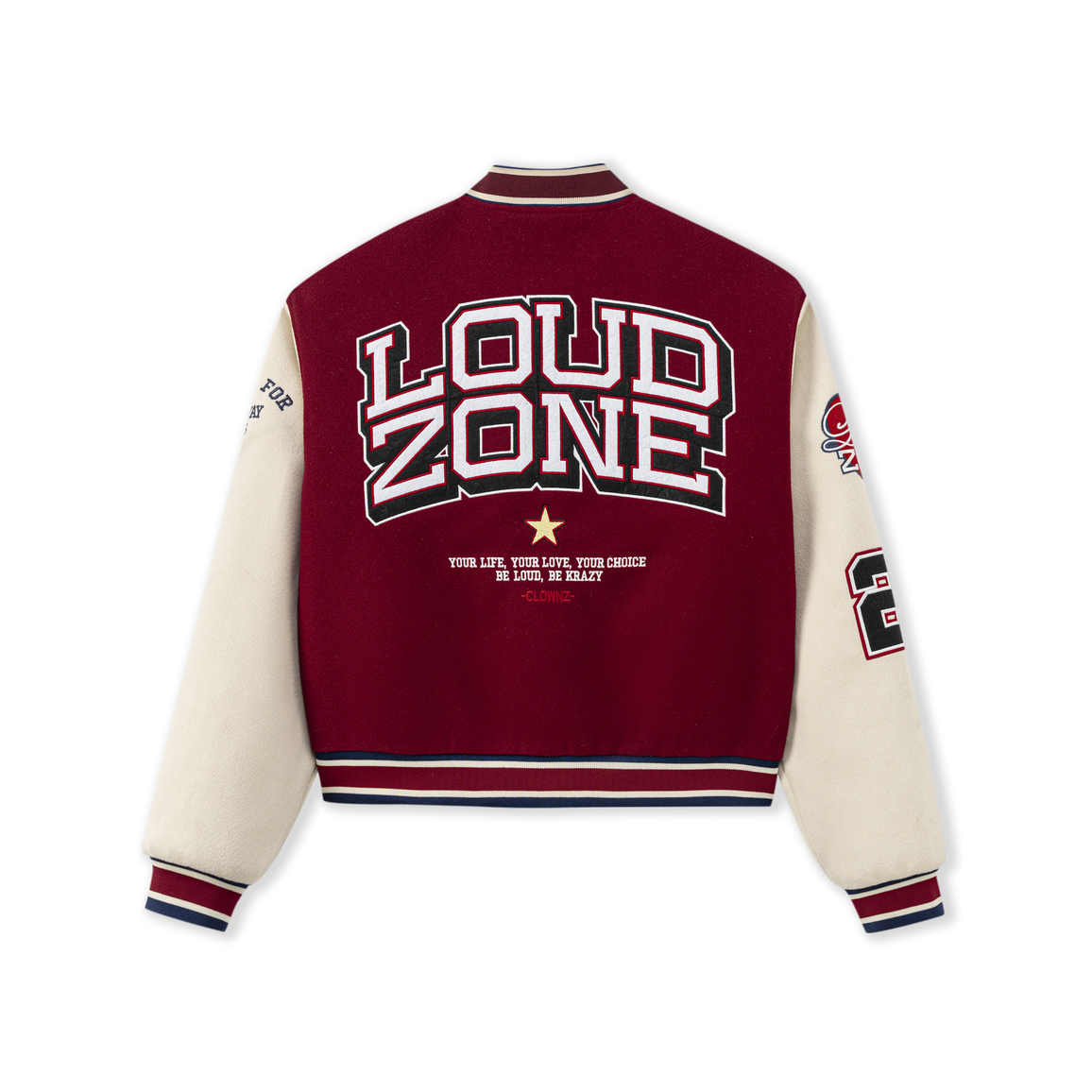 Chiếc varsity jacket mang tinh thần streetwear – college cổ điển, nổi bật với phối màu đỏ đô – be sang trọng, form dáng gọn gàng, dễ mặc và cực kỳ bắt mắt đến từ ClownZ.